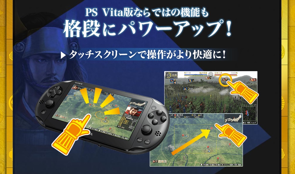 PlaiStation3版、PlayStation4版を完全移植。軍団や外交が大幅に強化されていて、パワーアップキット版おなじみの新たなシナリオや『戦国伝』、追加武将や各種エディタも追加となっています。携帯ゲーム機でここまでの内容ができることが、もう驚き(まあデータ量が多ければカクつきそうですけどね)w